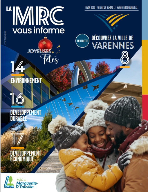 En passant à un nouveau format de style magazine ainsi qu'en offrant une signature plus moderne et dynamique, la MRC souhaite actualiser son bulletin afin de diffuser de façon plus attrayante des informations utiles pour tous les citoyens (nes) de ses six municipalités, soit Calixa-Lavallée, Contrecœur, Saint-Amable, Sainte-Julie, Varennes et Verchères.